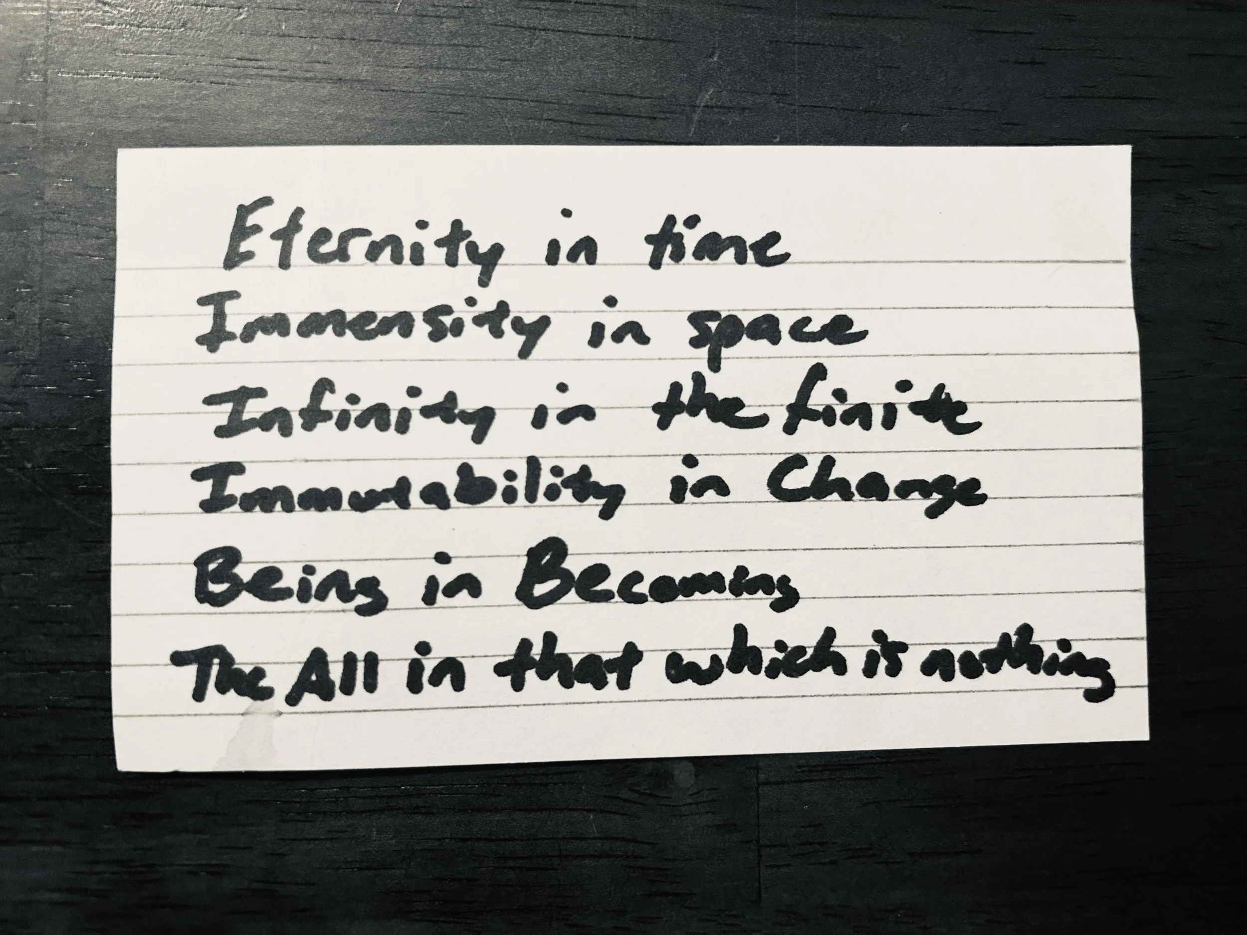 (Above: In December 2023, I read the quote from Herman Bavinck cited in this article. I wrote the words down on a 3×5 notecard, pictured above, and it has remained on my desk ever since as a reminder of God’s kindness to accommodate His creation.)